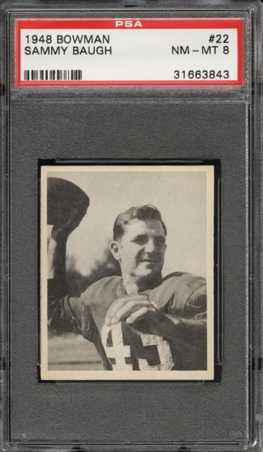 The 1948 Bowman Football set also includes cultural pioneers who transcended sports. For example, the rookie card of Kenny Washington is featured — a player who broke the color barrier in the NFL, and whose historical significance have kept his cards a point of interest among collectors.