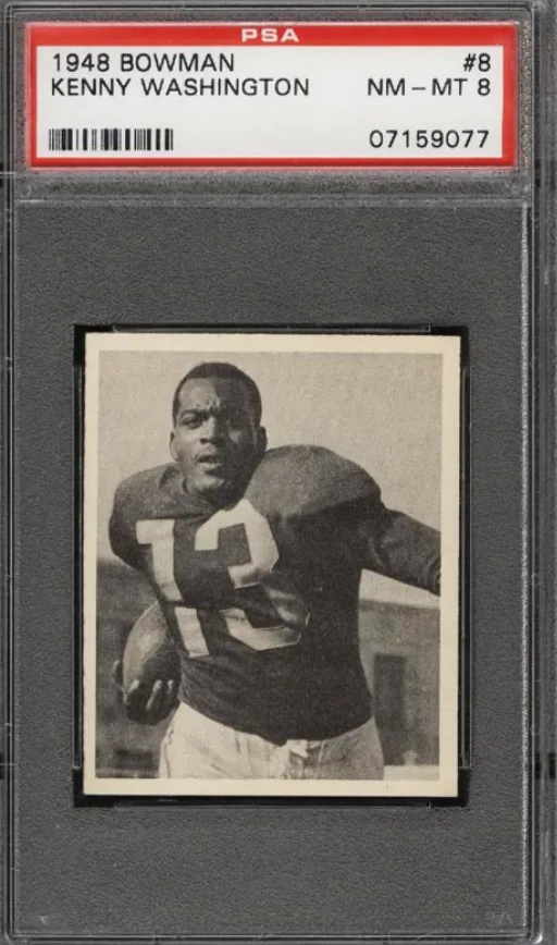 The 1948 Bowman Football set also includes cultural pioneers who transcended sports. For example, the rookie card of Kenny Washington is featured — a player who broke the color barrier in the NFL, and whose historical significance have kept his cards a point of interest among collectors.