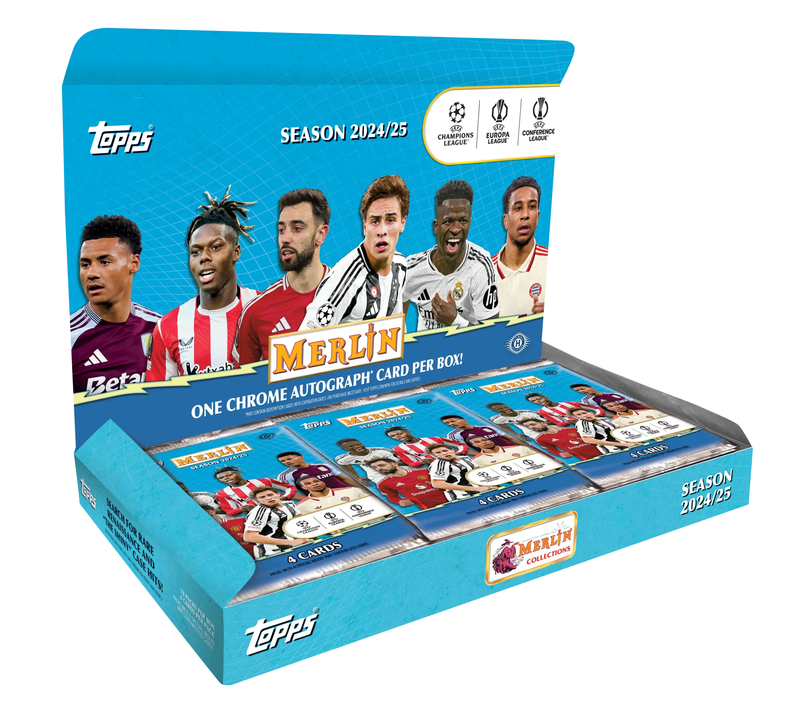 Topps Merlin UEFA Club Competitions returns for 2024-25 with its signature blend of magic, nostalgia, and modern football greatness. Featuring stars from the UEFA Champions League, Europa League, and Conference League, Merlin offers collectors multiple box formats — each delivering a distinct ripping experience.