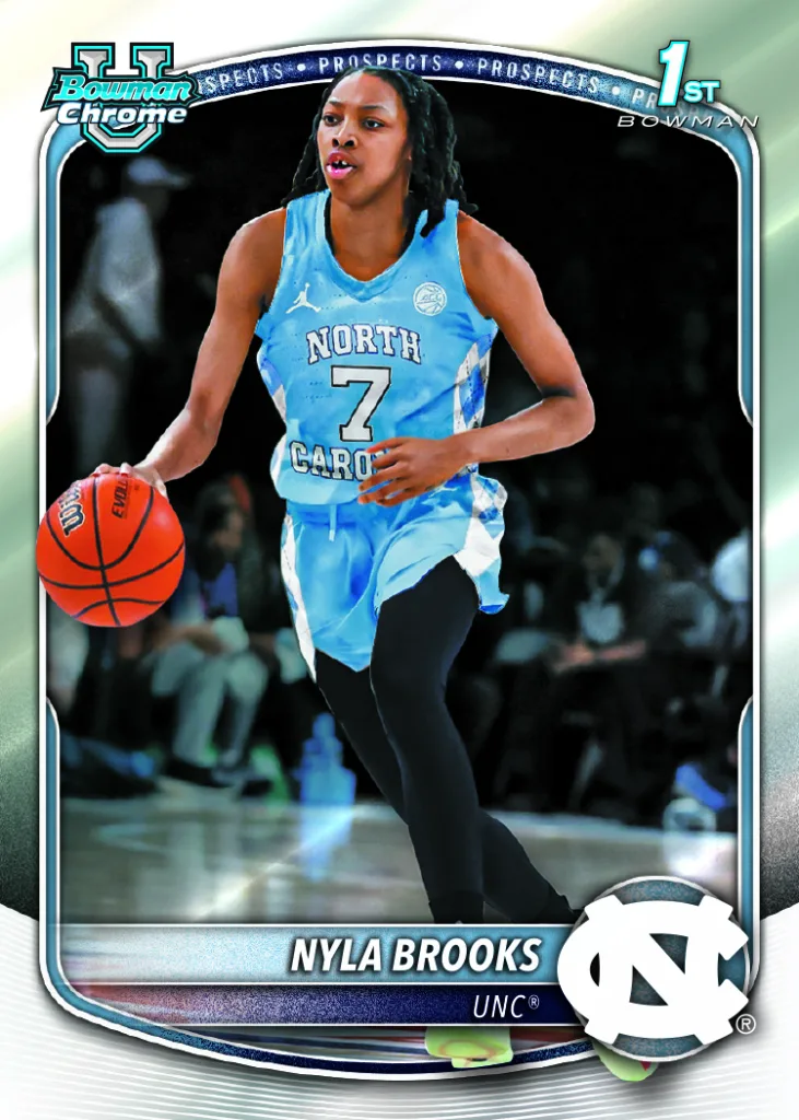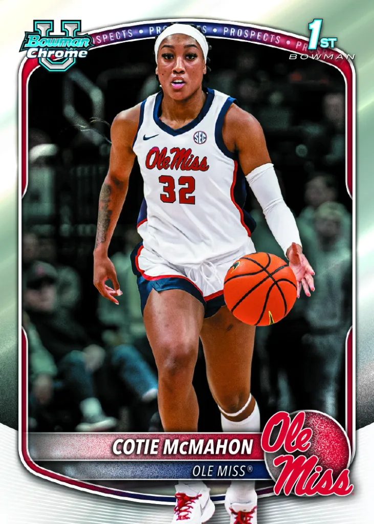 While the checklist spans both levels of the game, the focus of 1st Bowmans stays rooted on the collegiate side, highlighting players before they reach the league and giving collectors a true first look at the future.