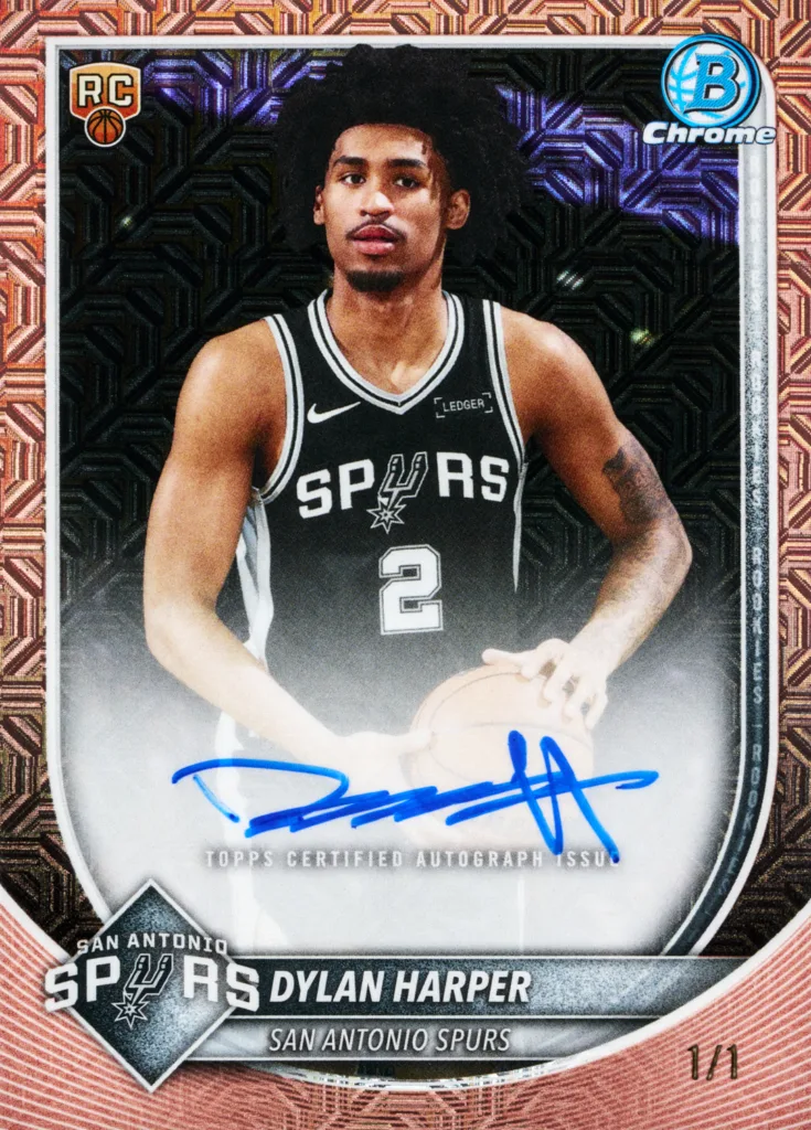 Mojo, a stunning Mega Box-exclusive parallel, features a compelling run, with numbered parallels from /299 all the way down to a pair of beautiful 1/1 parallels, including the mesmerizing Rose Gold Mojo.