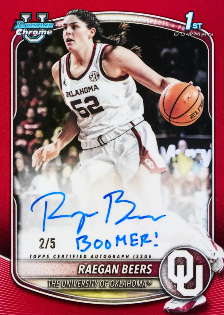 For collectors who want to start at the origin of greatness, the iconic 1st Bowman offers both ink and prestige. Stars like Reagan Beers are showcased alongside possible top lottery pick Cameron Boozer, heading to the NBA fresh off a phenomenal freshman season at Duke.