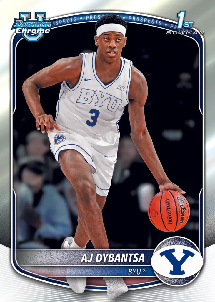 2025–26 Bowman Basketball is a prospect-focused NBA and NCAA trading card release built around 1st Bowman cards of future stars. Showcasing a curated checklist of NBA players and top prospects, the product offers collectors an early look at the next generation, along with inserts, parallels, and autograph chase cards across multiple collecting avenues.