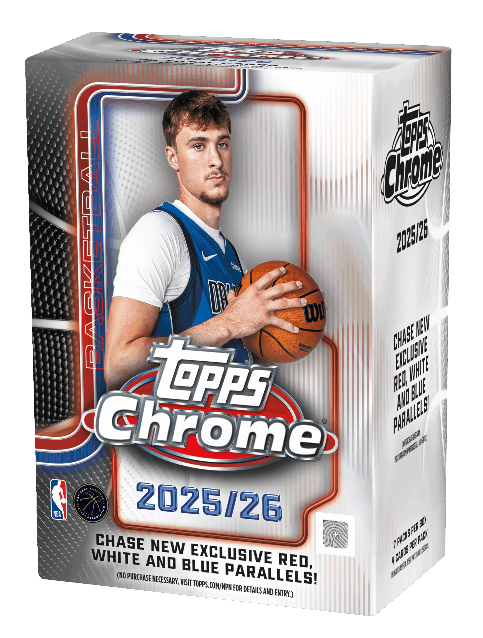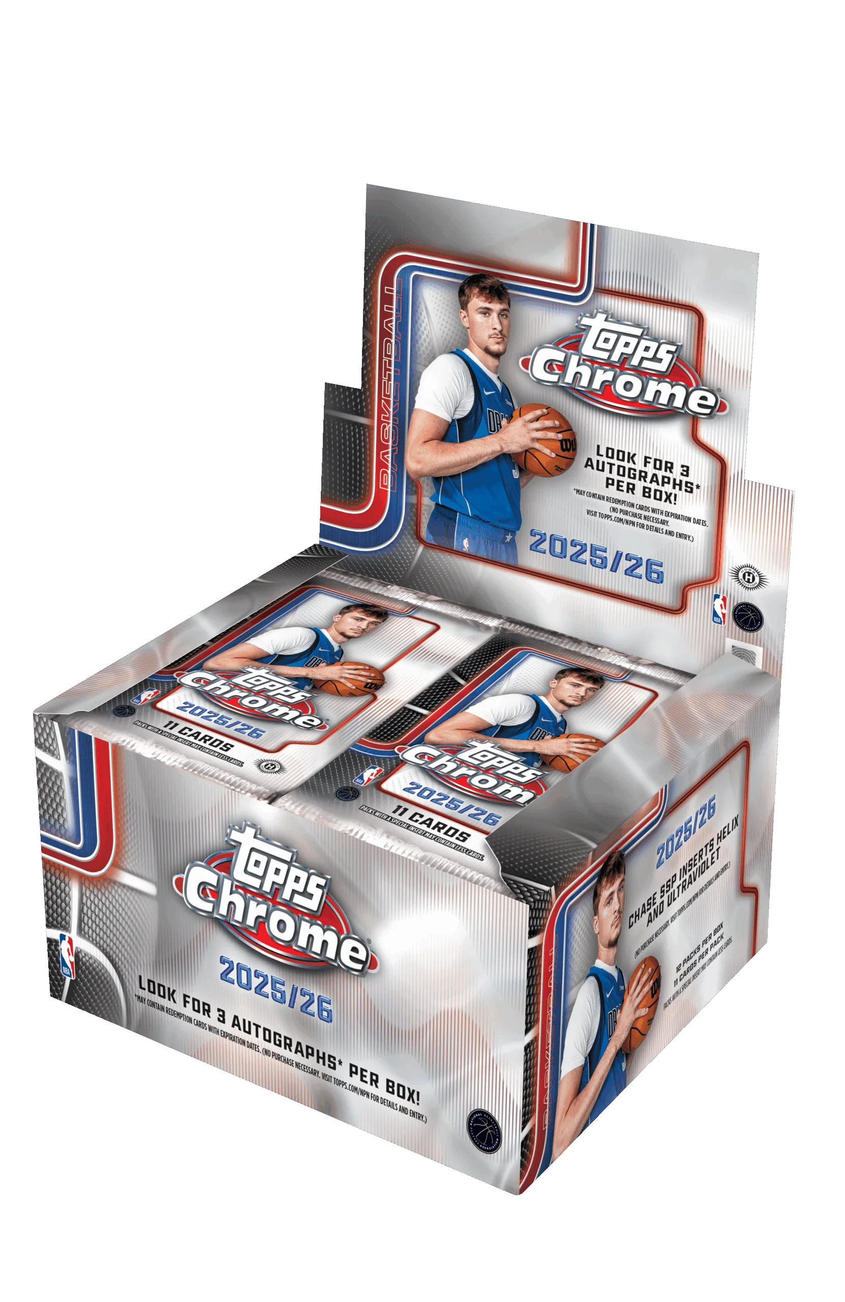 Topps Chrome Basketball returns for the 2025–26 season with a shine brighter than ever. Built around a 299-card base set of rookies, stars, and legends, this year’s release brings deeper color chases, bold new inserts, and plenty of signature action. With five box formats—Hobby, Jumbo, Retail Value, Mega, and Hanger—every collector can find their lane.