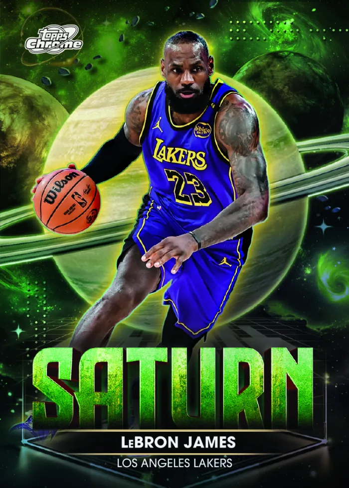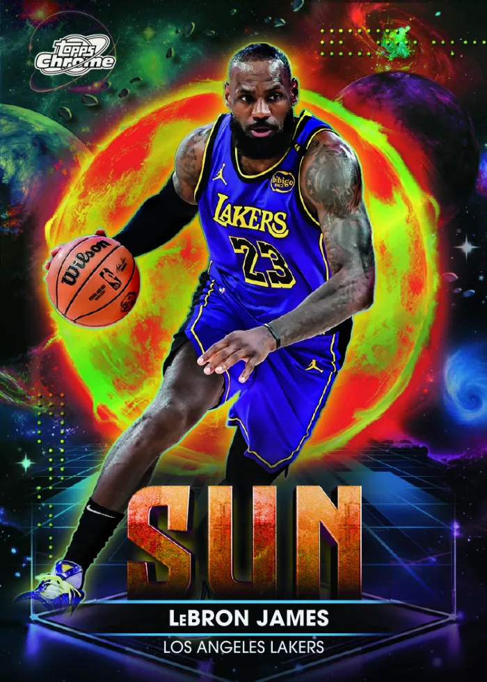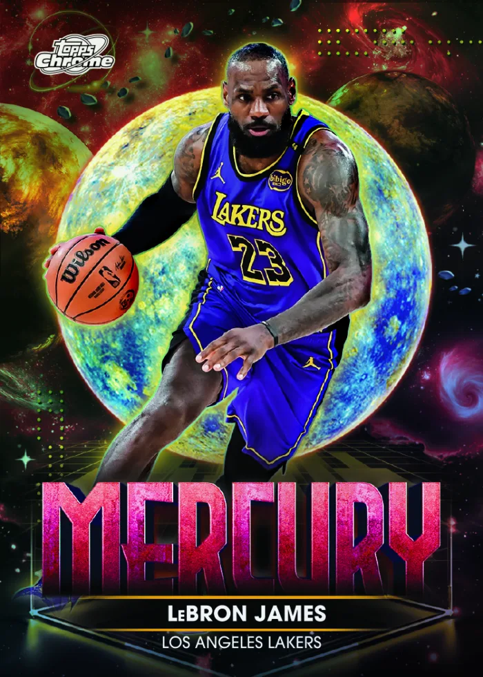 Cosmic energy collides with the hardwood in 2025–26 Topps Cosmic Chrome® Basketball, arriving April 29, 2026. Known for its vibrant, otherworldly designs and futuristic flair, Cosmic Chrome returns with a visually explosive release that blends the NBA’s brightest stars, rising phenoms, and boundary-pushing card artistry.