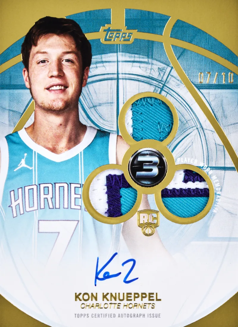 2025-26 Topps Three Basketball Rookie 3 Patch Autographs Vertical #RPV-KK Kon Knueppel /10
