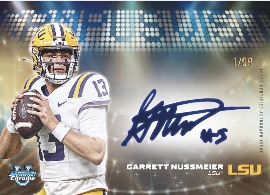 2025 Bowman University Chrome® Football boasts a variety of auto-filled subsets, including Campus Visit Autographs, Sapphire Selections Signatures, 1955 All-American Autograph Variations, and more.
