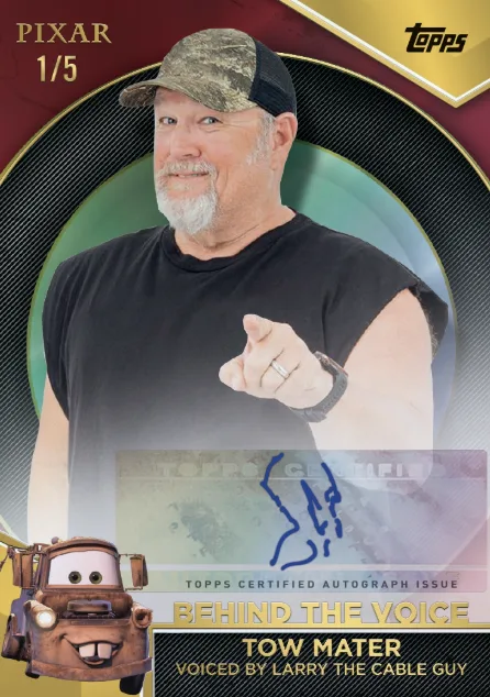 Behind the Voice Autographs is a 6-card autograph-filled subset featuring signatures from the voices behind your favorite Pixar characters.