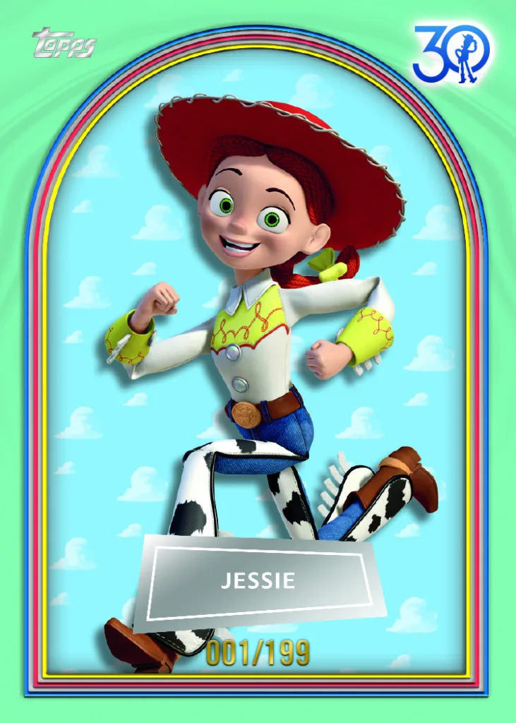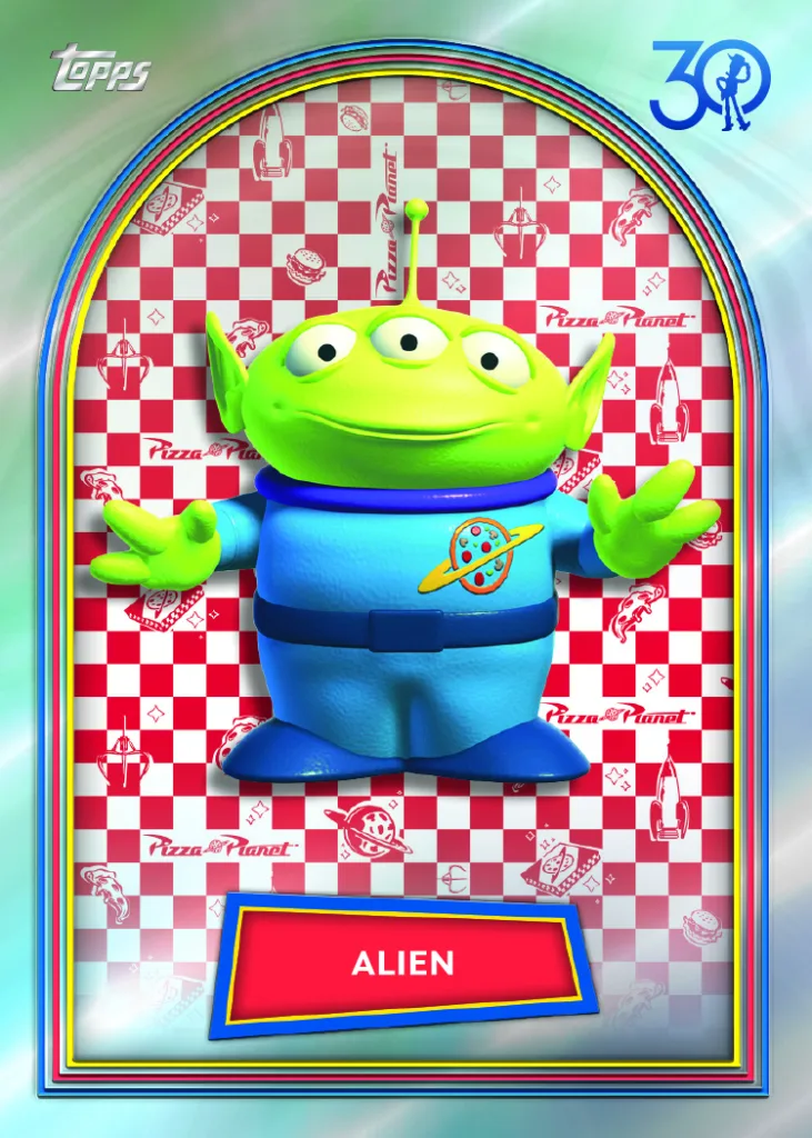 The 2025 Topps 30 Years of Toy Story base set features 100 base cards spanning the Toy Story universe, with a compelling parallel structure to chase.