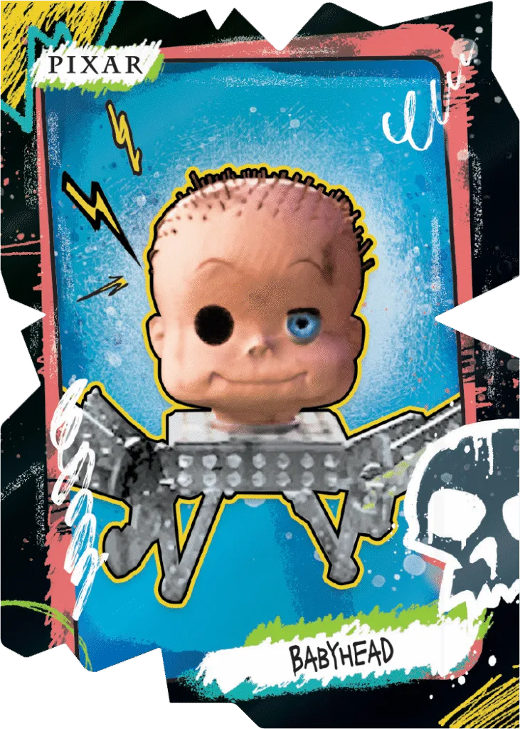 Sid Has Your Cards is a short print insert that asks the question: What if the neighborhood menace from the original Toy Story got his hands on your collection? These cards feature chaotic designs that look customized by Sid himself.