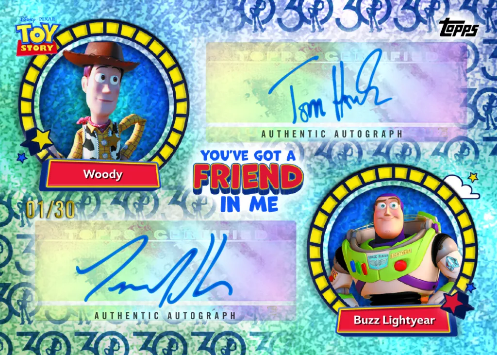 2025 Topps 30 Years of Toy Story features autograph cards for the stars who voice the series’ unforgettable characters.