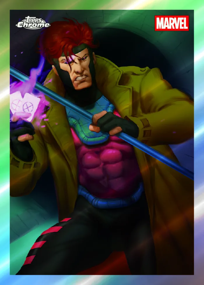 “Chrome already gives you that sleek, reflective finish, so we leaned into bold imagery and strong color blocking to give Deadpool presence on the card,” Catriz explained. “The chaos comes more from the attitude of the design and the imagery, rather than cluttering the layout. It’s controlled energy rather than visual noise.”