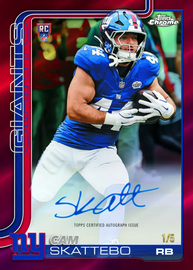 Matt Brier, collector: Topps Chrome has always been about the color popping off the card, and looking at the 2025 checklist, there is no shortage of color. For my money, Gold /50, Red /5 are the standards. And, if you’re lucky enough, who doesn’t love the return of a Topps Football Superfractor?