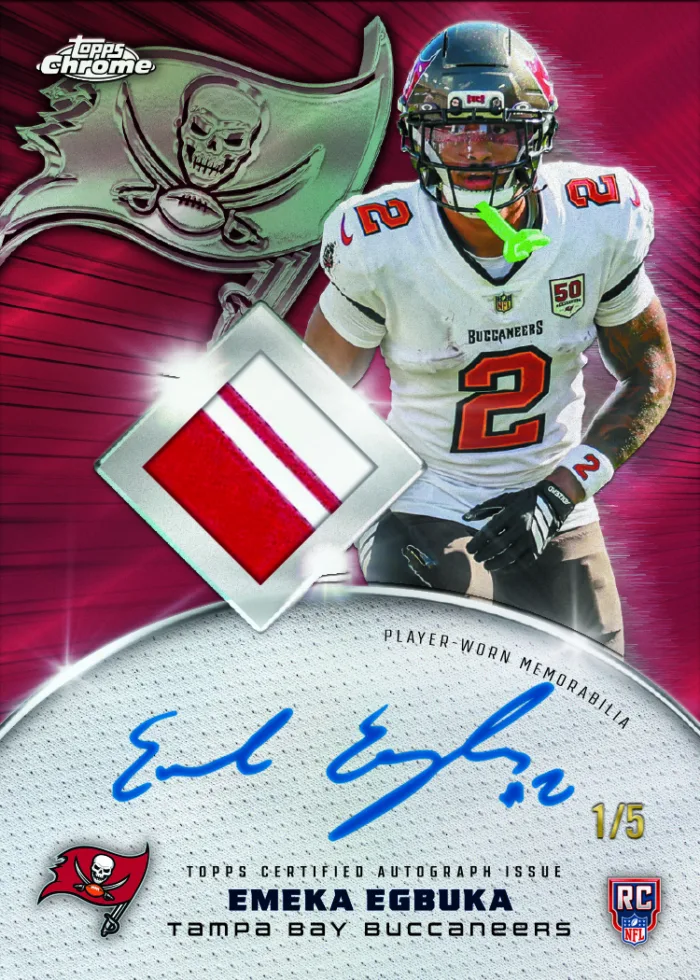 He’s a key chase player for Bucs collectors in 2025 Topps Chrome Football.