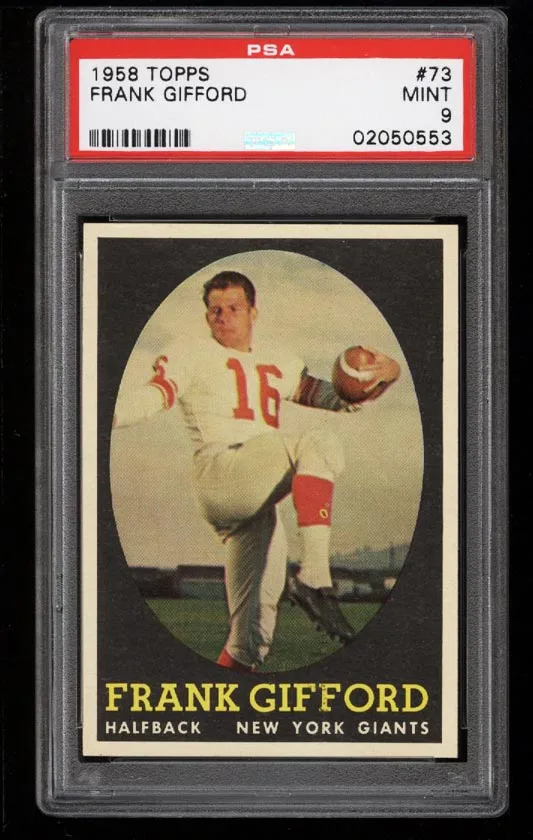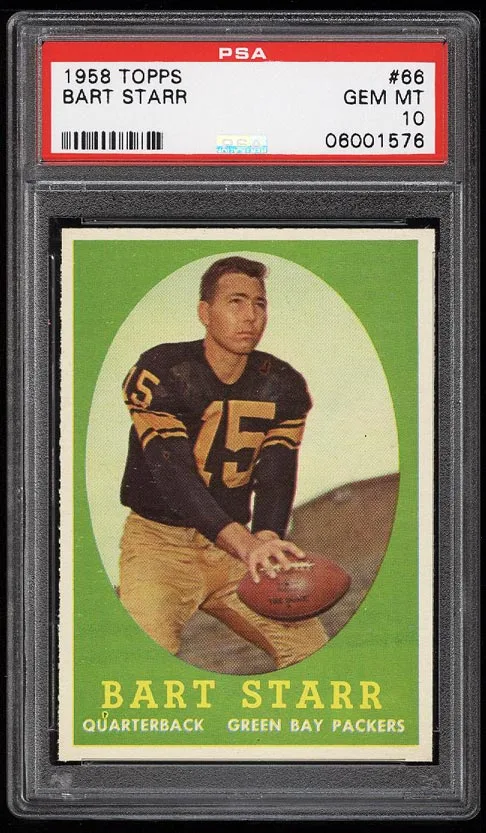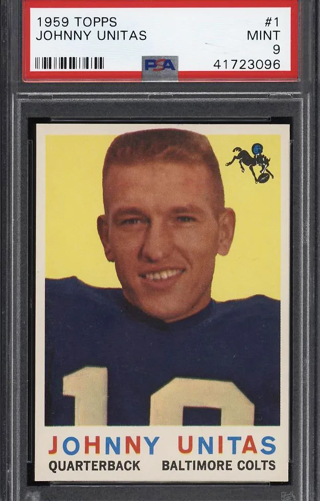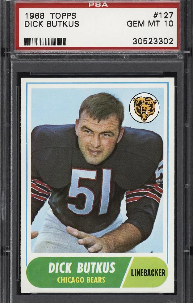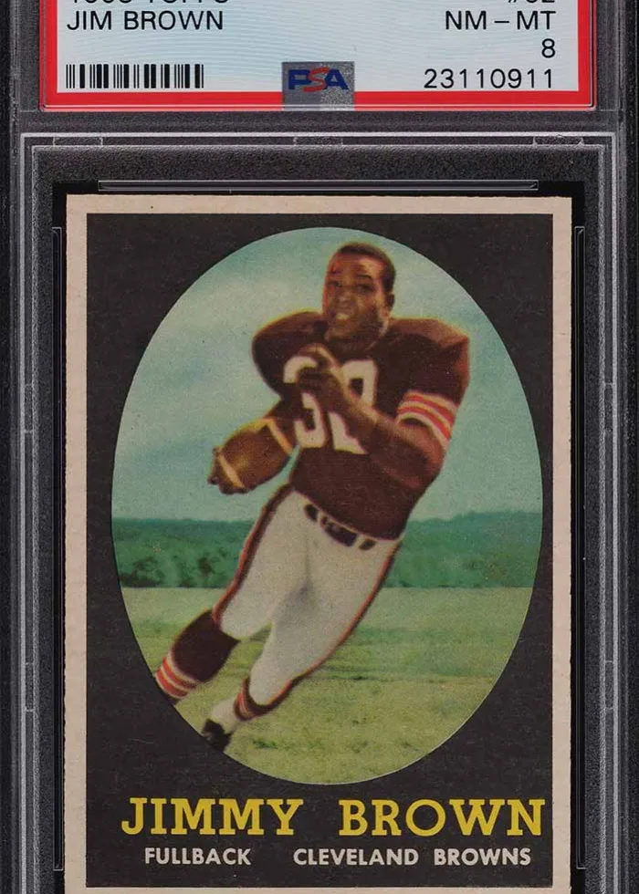 One of the true legends of American sport, Jim Brown’s dominance is unparalleled on the gridiron. Brown won three MVPs, including one as a rookie and one in his final season. He captured eight rushing titles in his nine seasons. His 1958 Topps RC is one of the grails of the football Hobby.
