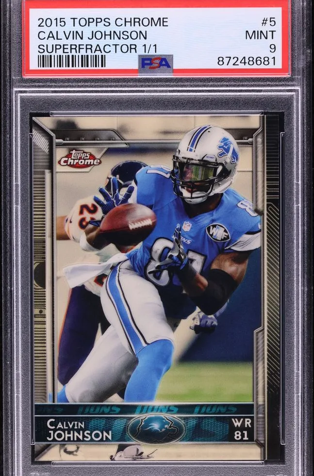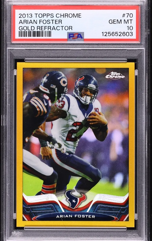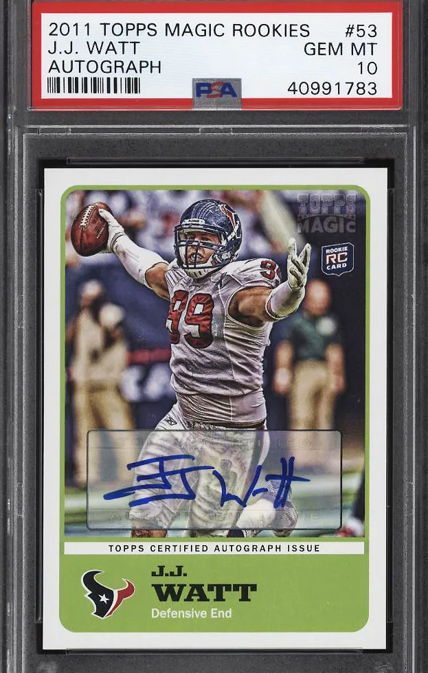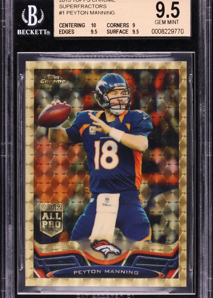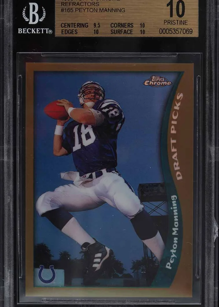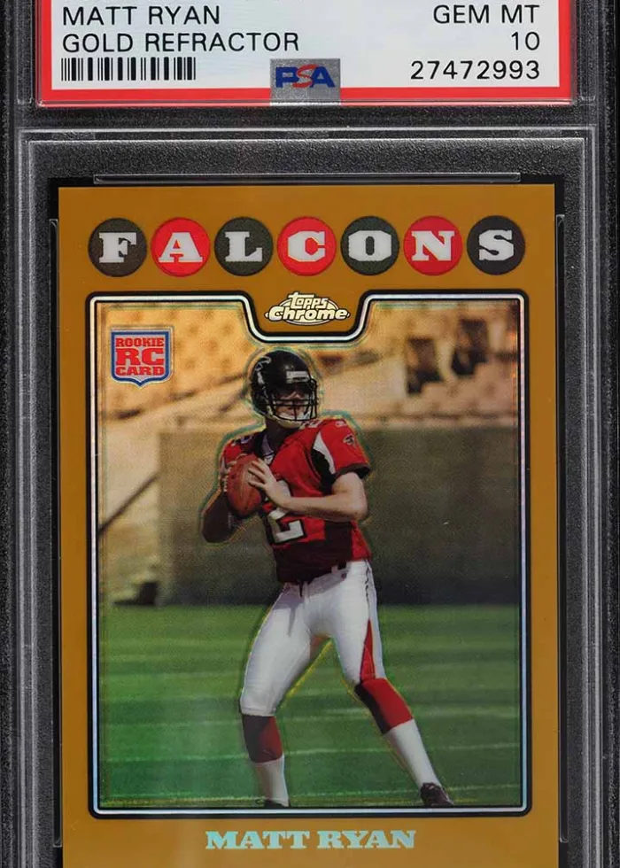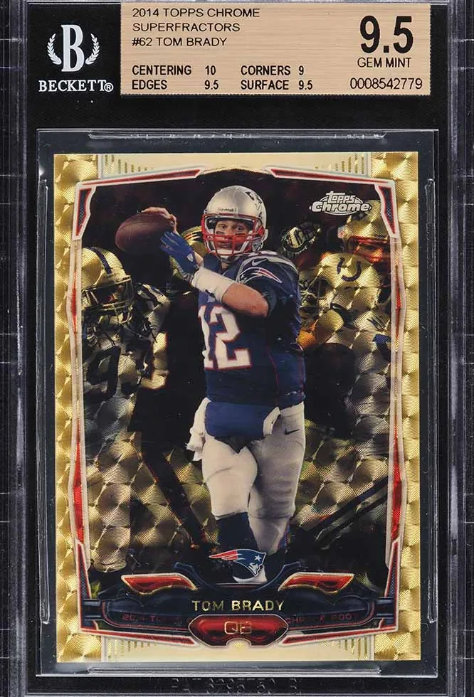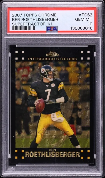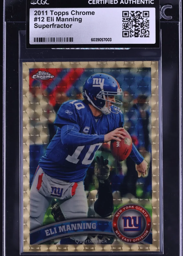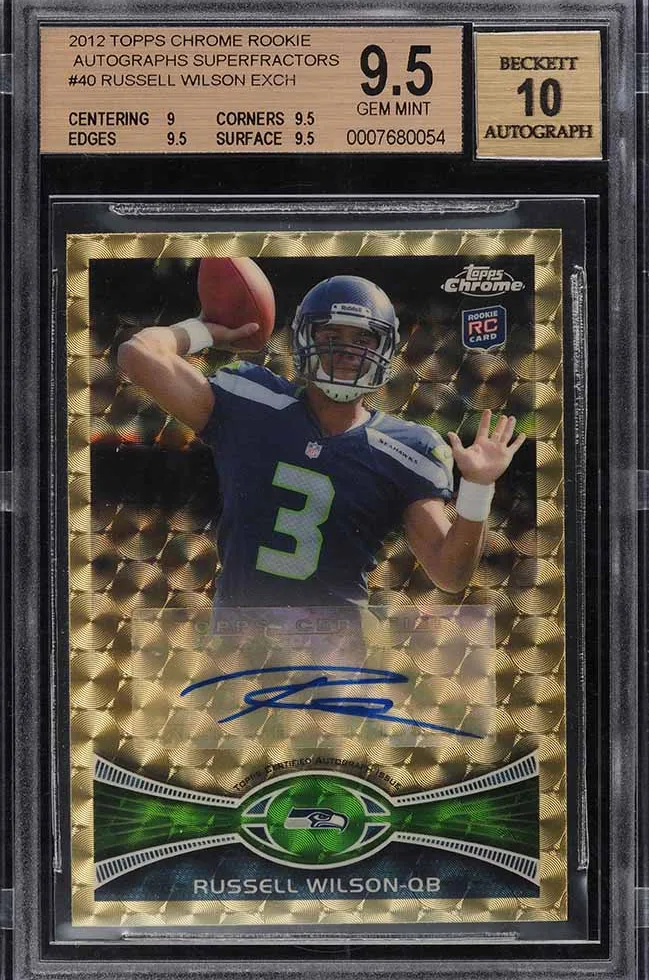 Wilson rose from a third-round draft pick to a Super Bowl Champion. A Pro Bowler 10 times, he has 353 career passing touchdowns and almost 47,000 passing yards. His 2012 Topps Chrome Rookie Auto Superfractor sold for $56,000 in October 2025 through Fanatics Collect.