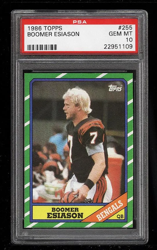 The 1988 NFL MVP, Boomer led the Bengals to Super Bowl XXIII. His 1986 Topps RC is a classic for Bengals collectors. A four-time Pro Bowler, Esiason remains a prominent figure in the sports world today, appearing on The NFL Today for years and hosting his own sports talk show.