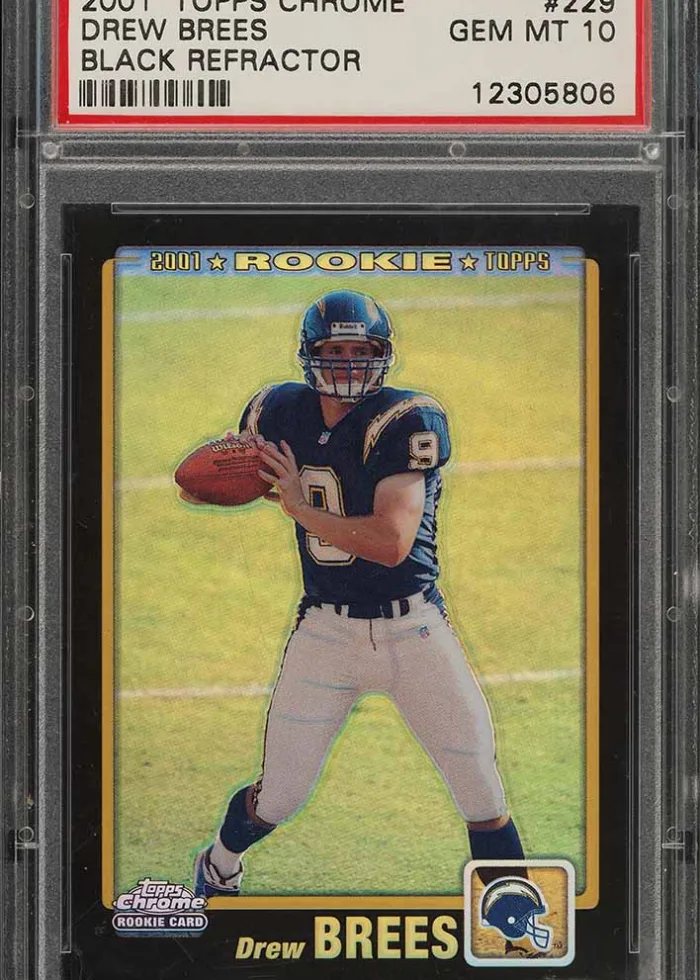Perhaps the most popular player in franchise history, Brees did it all in New Orleans, including winning the franchise’s first and only Super Bowl, defeating Peyton Manning and the Colts 31-17. Second all-time in career passing yards and touchdowns, his 2001 Topps Chrome RC’s is one of most sought-after cards in the Saints Hobby.