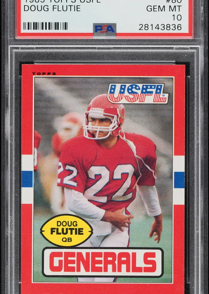 Flutie’s career in Buffalo wasn’t a long one, but he became an all-time fan favorite in his brief stay. A Heisman winner best-known for his iconic Hail Mary with Boston College, Flutie had his best run in the NFL with the Bills. His USFL rookie card is a fun nod to the entertaining journeyman’s fascinating career.