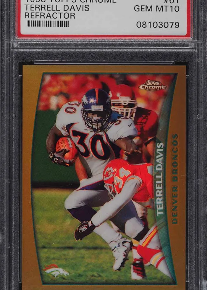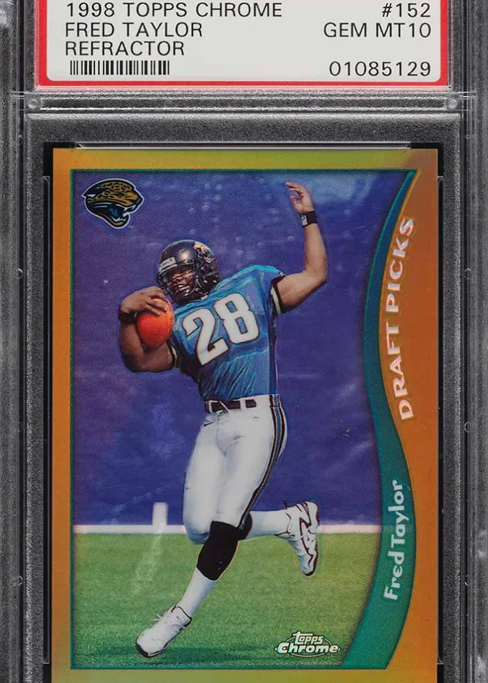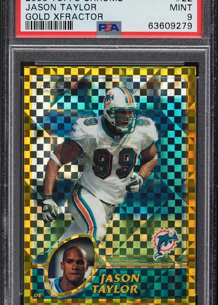 One of the most dynamic defensive players of his generation, Taylor brought speed and personality to the edge for the Miami Dolphins. The 2006 NFL Defensive Player of the Year racked up 139.5 sacks in his career. Taylor’s Chrome RC can be found in the 1998 release.