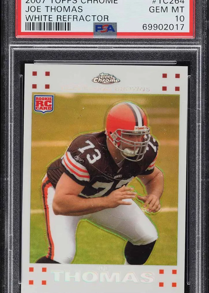 Thomas was a 10-time Pro Bowler in an 11-season career, as well as a six-time first-team All-Pro. Thomas was the best player in Cleveland throughout his career, and his Chrome RC can be found in 2007 Topps Chrome Football.