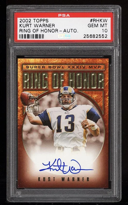 A recent Super Bowl victor and a current contender, the Rams have built an exciting identity in Los Angeles, highlighted by star power and elite coaching. Collectors can chase a pair of legendary running backs, a Super Bowl-winning QB, a defensive superstar, and the reigning MVP.