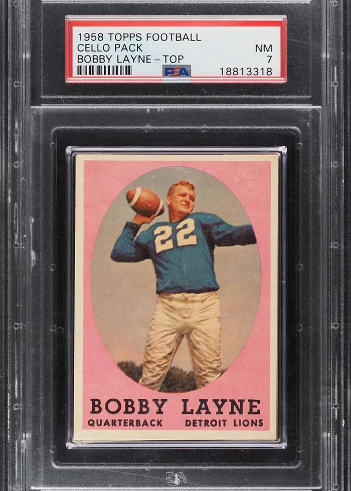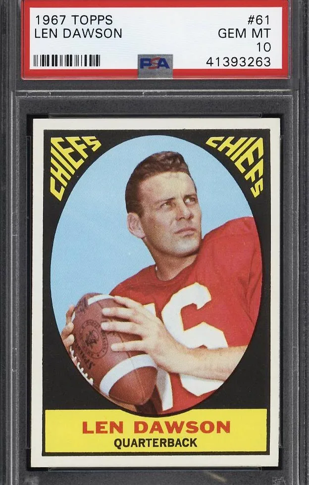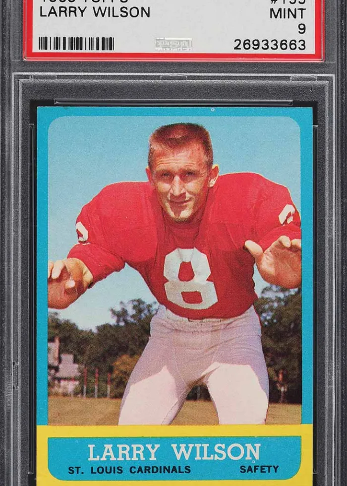 The 1966 NFL Defensive Player of the Year, Wilson was named First-Team All-Pro six times. He’s also an amazing conduit for the story of the franchise. In addition to playing for the team from 1960-72, he served on the coaching staff and front office. All told, he was with the Cardinals for 42 years. His 1963 Topps RC sold for $3,000 in 2025.