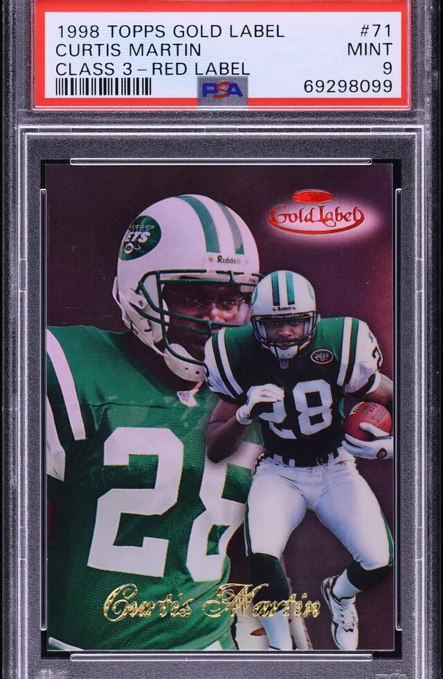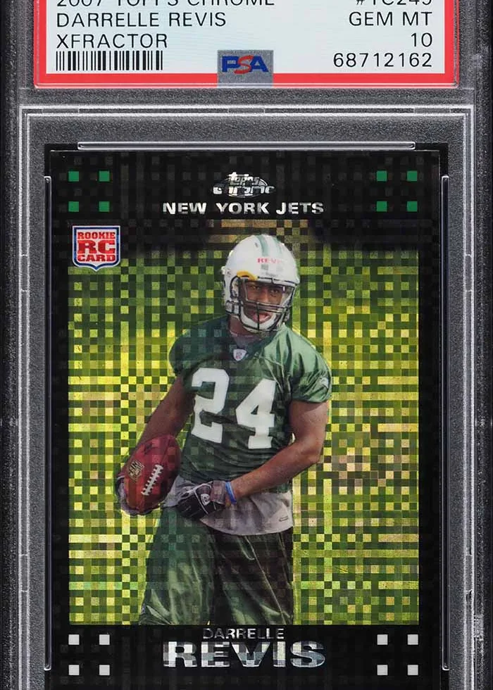 Revis Island was a lonely place for wide receivers throughout the shutdown cornerback’s Hall of Fame career. A four-time All-Pro, Revis is considered one of the best defensive players in NFL history. His 2007 Topps Chrome RC X-Fractor is a brilliant card that helps make any Jets’ collection pop.