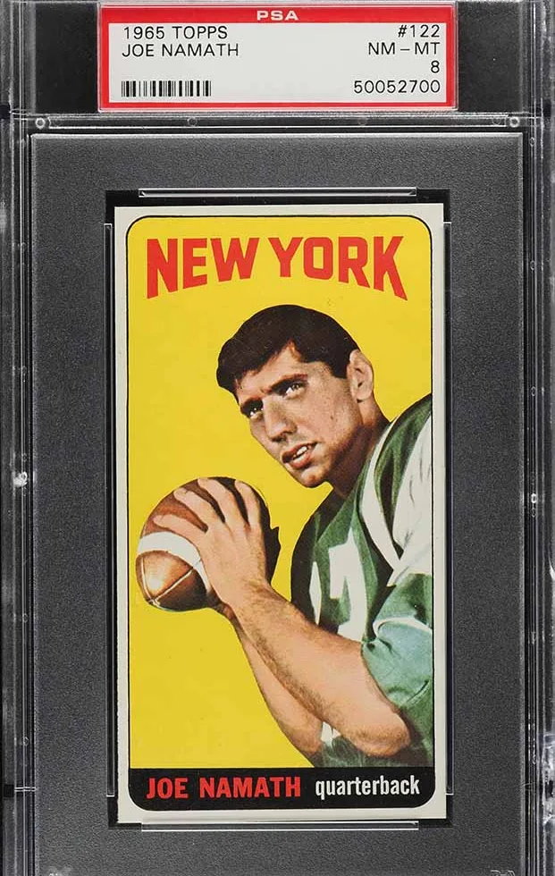 Broadway Joe is a legendary figure for the league and the Jets. Most famous for guaranteeing victory over the favored Indianapolis Colts in Super Bowl III, Namath followed through with a Super Bowl MVP-winning performance. His 1965 Topps Football rookie card is a grail for Jets collectors, selling for as much as $264,000 in 2018.