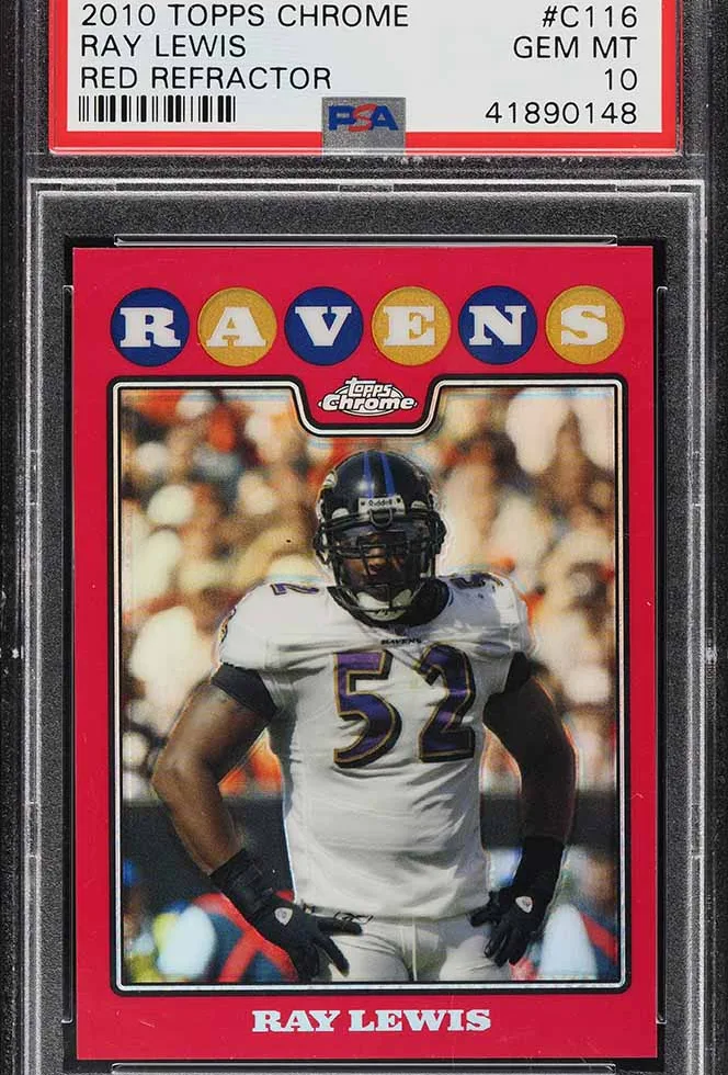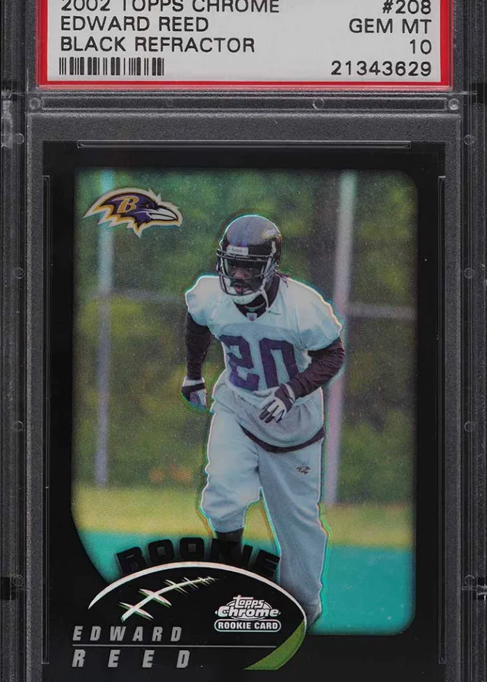 Ed Reed may just be the best safety in NFL history. An eight-time All-Pro, Reed defined an entire era of Ravens football along with Ray Lewis. The 2004 Defensive Player of the Year was a leader on one of the best defenses the sport has ever seen. His 2002 Topps Finest RC is perhaps his most coveted trading card.