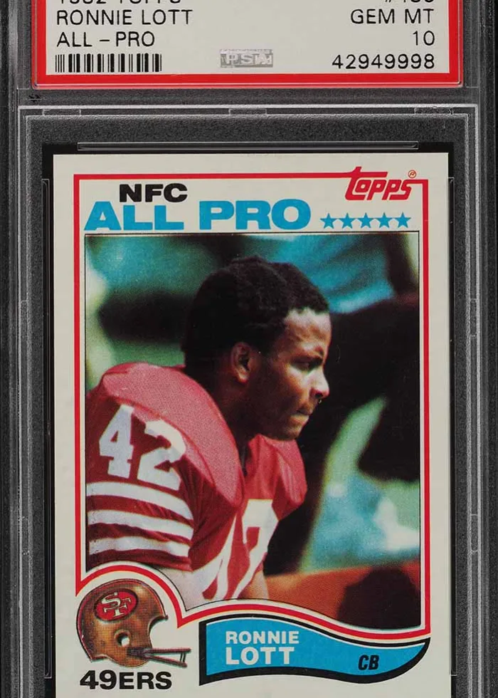 Lott was the leader on defense during San Francisco’s glory years. A four-time champ, Lott was selected First-Team All-Pro eight times and led the league in interceptions on two occasions. The college and pro Hall of Famer is a key player for any collector telling the story of the Niners’ dynastic run.