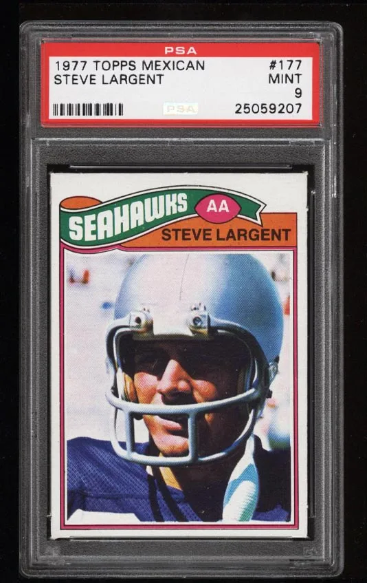Largent made seven All-Pro teams from 1978-1987, going over 1,000 yards eight receiving times and leading the league twice. Largent remains way ahead of the pack for franchise history receptions, receiving yards, and touchdowns. His 1977 Topps RC is a phenomenal vintage chase card for Seahawks collectors.