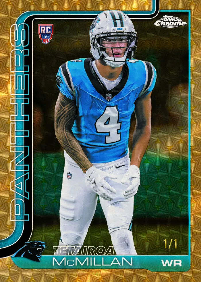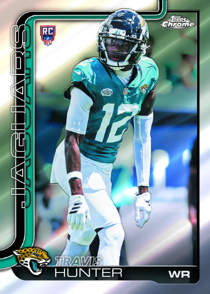 2025 Topps Chrome Football offers multiple collecting paths, including rookie builds, team sets, player collections, rainbow Refractor chases, and insert sets. Each method offers collectors different ways to engage with the product, from value-driven strategies to visually focused collecting goals.