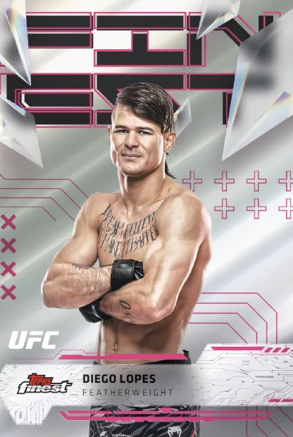 Celebrating the artistry and athleticism of mixed martial arts, 2025 Topps Finest UFC delivers a sleek mix of innovation and tradition — highlighted by stunning inserts, rare chase cards, and the unmistakable shine that defines the Finest brand.
