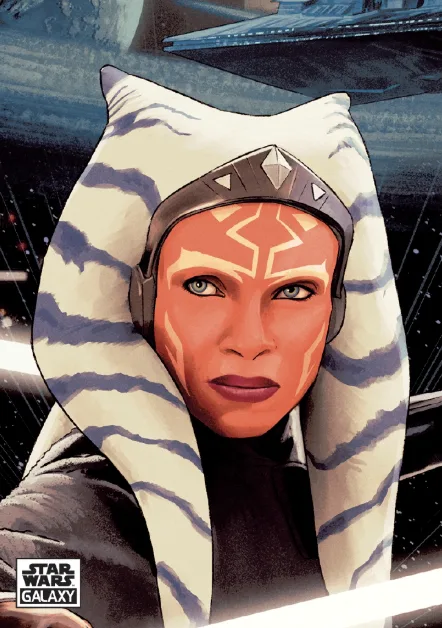 2025 Topps Star Wars Chrome® Galaxy Original Art Puzzle Cards is an insert featuring two 9-card subsets, with commissioned original art by top Star Wars artists Joe Corroney and Aurelio Lorenzo. The designs are inspired by the Disney+ series Ahsoka and Skeleton Crew.