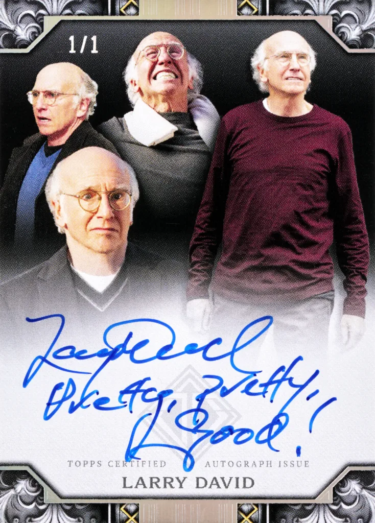 Larry David Autographs bring the comedy superstar, and one of the biggest celebrity chases, to 2025 Topps Transcendent. Collectors can chase a fantastic multi-image auto card, limited to 10 copies, capturing the expressive David at his funniest.