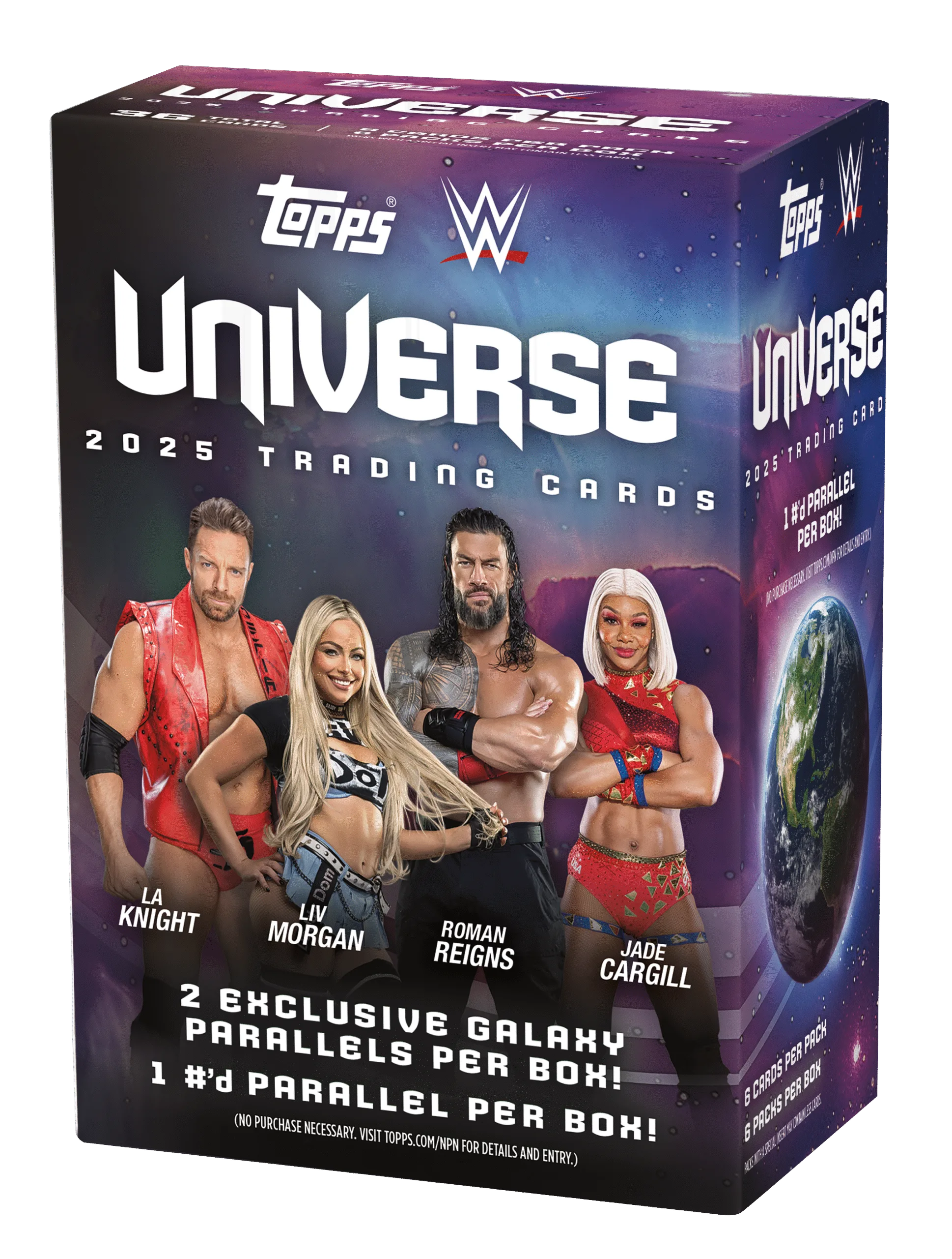 - Galaxy parallels are retail-exclusive cards found only in Value boxes. Their vibrant finish makes them a distinct parallel chase within the Universe WWE lineup.