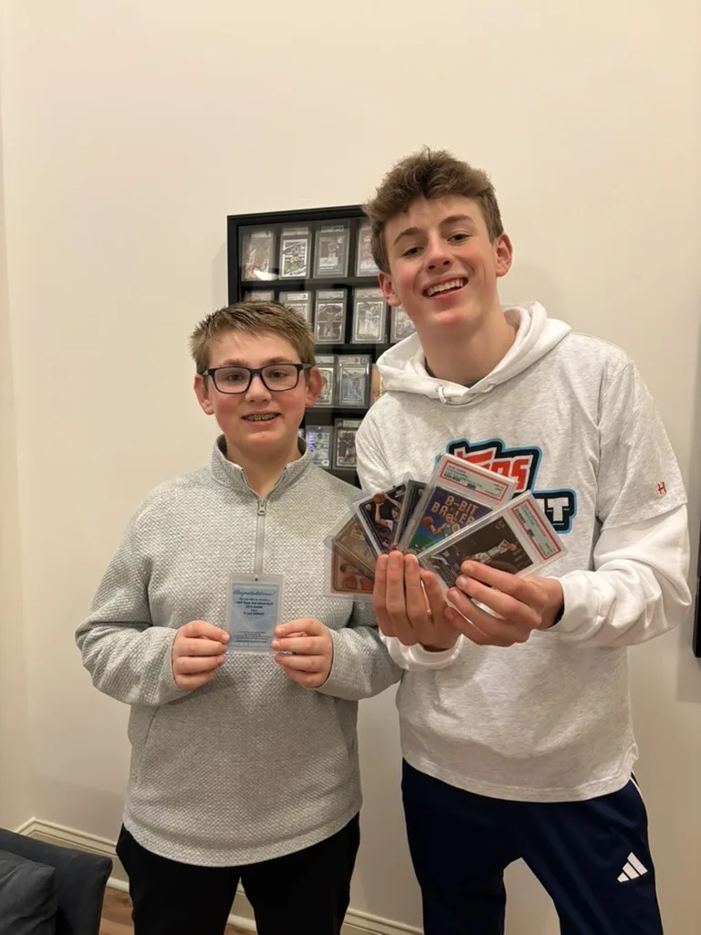 Dave, Mason, and Hudson are all avid collectors, mainly across baseball, football, and basketball. The boys, particularly Mason, love to collect basketball cards and are currently chasing Cooper Flagg and Kon Knueppel from a loaded rookie class. Hudson, who pulled the Gibson from a Series 1 Baseball pack, loves to hunt for Nick Kurtz cards.