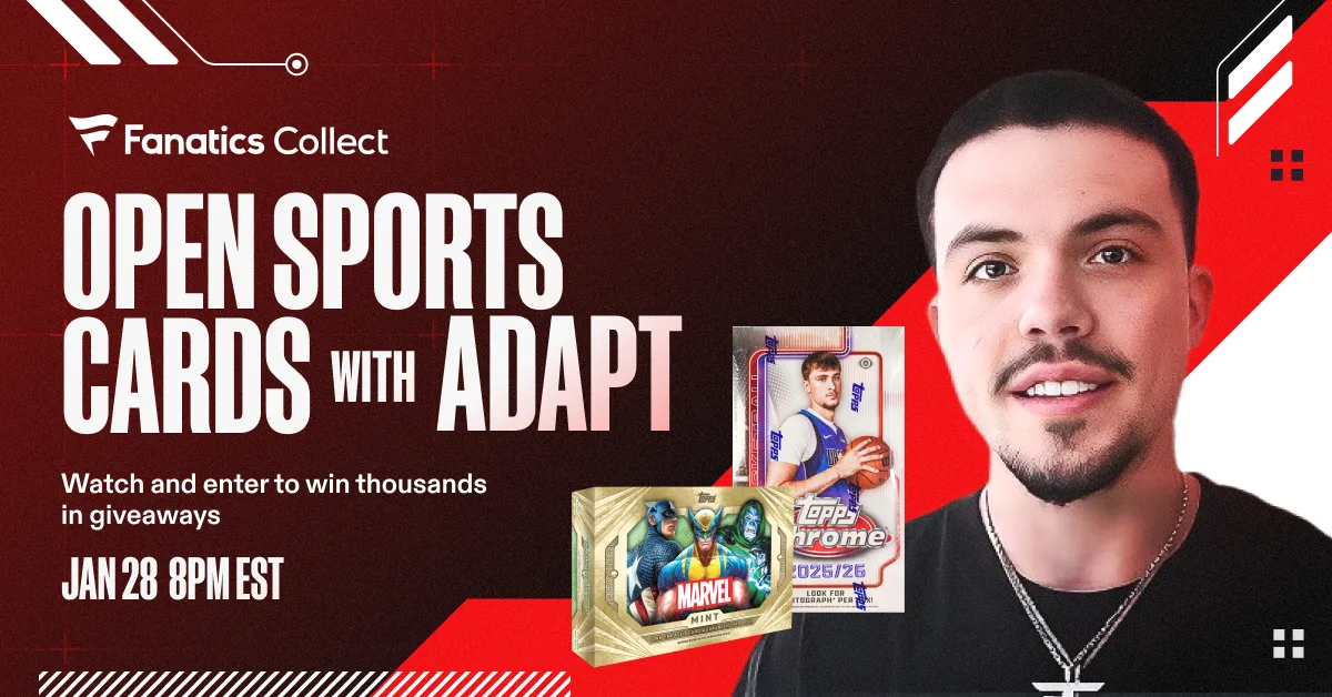 Popular Twitch streamer Adapt is teaming up with Fanatics Live this Wednesday for a can’t-miss live break packed with cards, Instant Rips, and major giveaways.