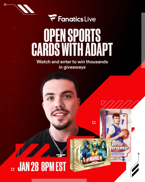 Popular Twitch streamer Adapt is teaming up with Fanatics Live this Wednesday for a can’t-miss live break packed with cards, Instant Rips, and major giveaways.