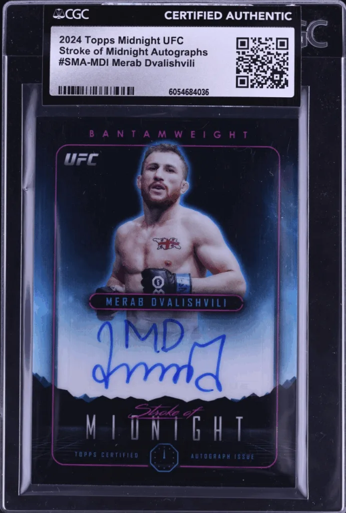 With Dvalishvili’s dominance of the UFC’s bantamweight division being solidified over the last few years, he’s been featured in sets such as Topps Chrome® UFC, Topps Midnight UFC, and is a regular face on quickly sold-out Topps NOW® drops. These are just a few of the cards that you need to put on your radar as Dvalishvili defends his title against Cory Sandhagen at UFC 320.