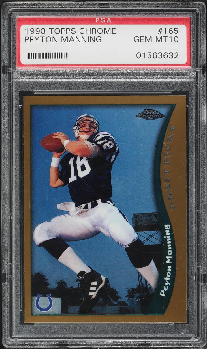 • manning’s most coveted topps rc, the refractor version has sold for as much as $39,000