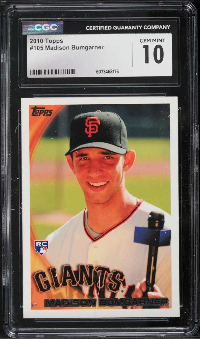 In 2014, Bumgarner etched his name into history, winning the World Series MVP — the culmination of one of the greatest postseason runs ever, which ended when he pitched five shutout innings in relief to win Game 7 against Kansas City. A true legend, his RC appears in 2010 Topps Series 1 Baseball.