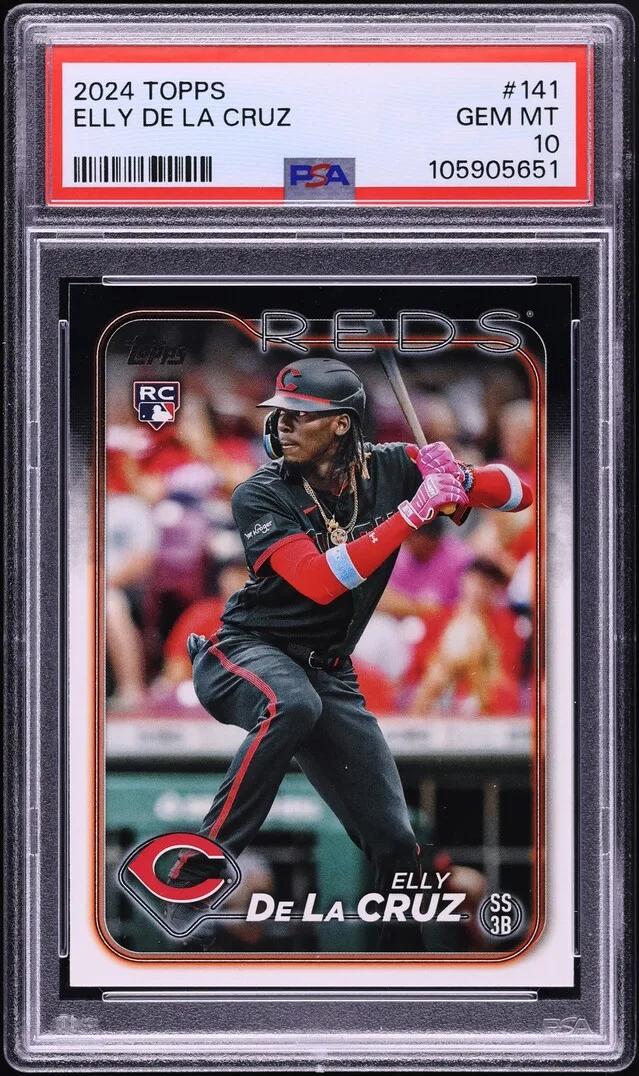 Elly De La Cruz is flat out one of the most exciting baseball players in the world. A highlight reel waiting to happen, his combination of speed, skill, and strength tantalizes fans and collectors alike. An All-Star in both of his first two seasons, he led MLB in stolen bases in 2024 with 67.