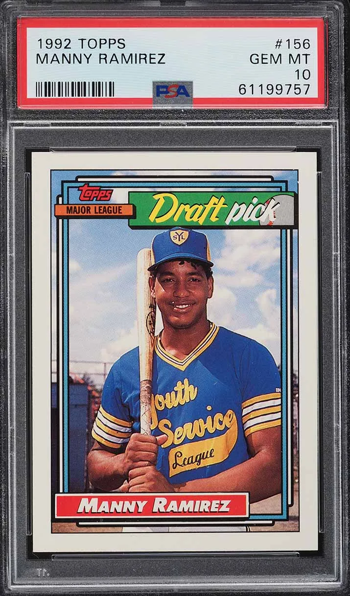 This Topps Series 1 card from 1992 is his Topps RC and a Draft Pick card. A rookie auto Topps Gold version of the card sold for $552 in June 2025 and is considered one of the most important Manny Ramirez cards of all-time.