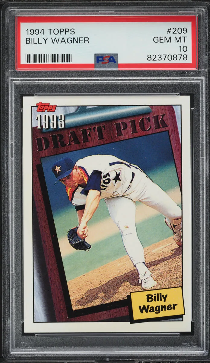 Beyond the stats, Wagner was a fierce competitor who could hit triple-digits on the radar gun. An inscribed auto version of his Series 1 RC (inscribed 7xAS) sold in March of 2025 for $500.