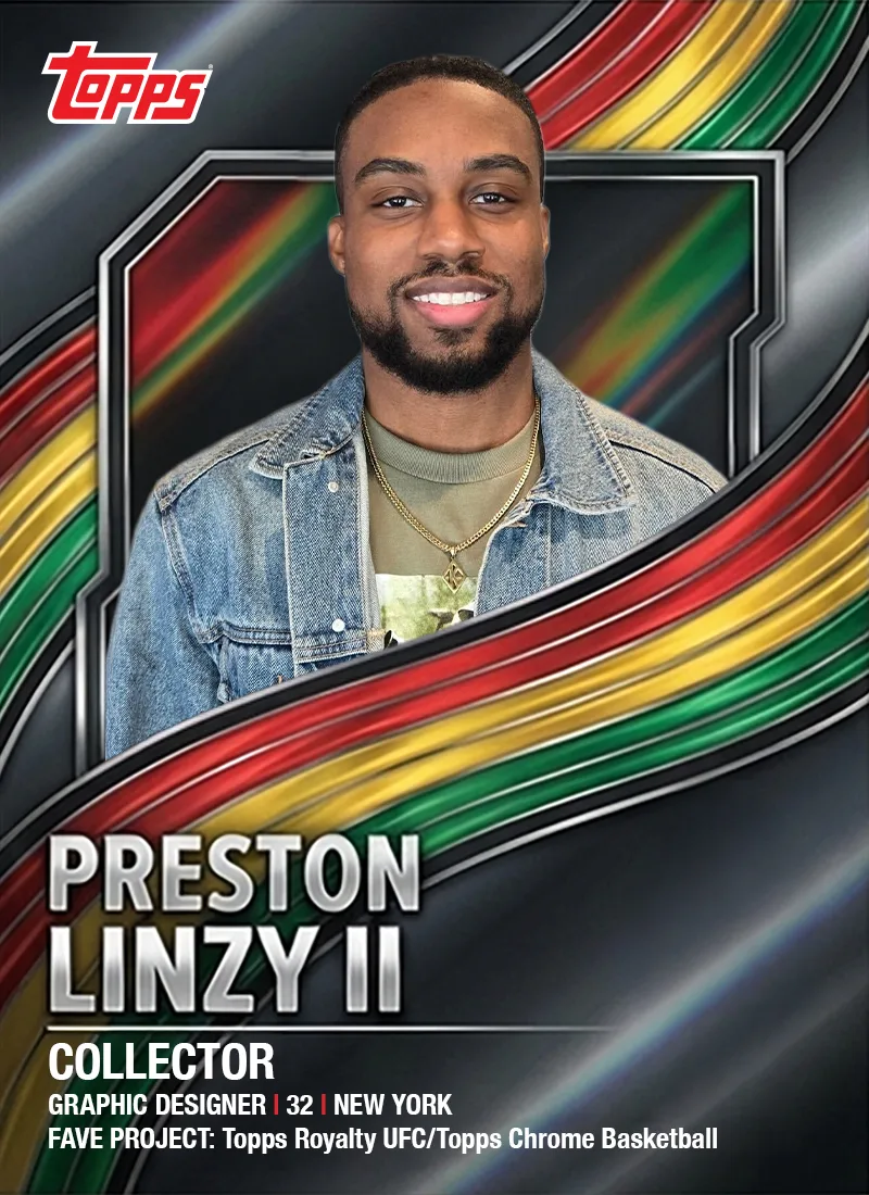 Preston Linzy II is a graphic designer at Topps whose work blends sport, culture, and storytelling. Since joining Fanatics in 2023, he has helped shape products like Topps Chrome Basketball while championing thoughtful design and representation behind the scenes in The Hobby.