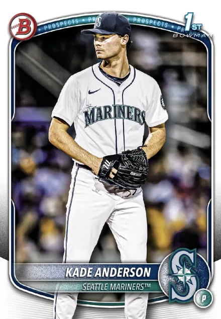 Collectors will also find Chrome Prospect Autographs Gold Ink Variations, offering a fresh twist on Bowman’s signature autograph lineup with striking gold ink signatures. New inserts like Prized Prospects and Axis spotlight emerging stars through dynamic, modern layouts, while Achromatic Autographs provides another a new addition to the Bowman Draft Baseball chase.