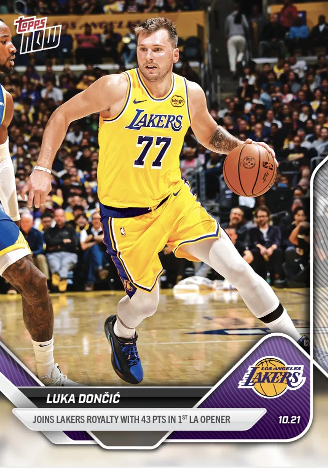 Luka Doncic made headlines on opening night with a spectacular 43-point performance. Topps NOW commemorated the moment, in which Doncic joined Kobe Bryant and Elgin Baylor as the only Lakers with at least 40 points on opening night.