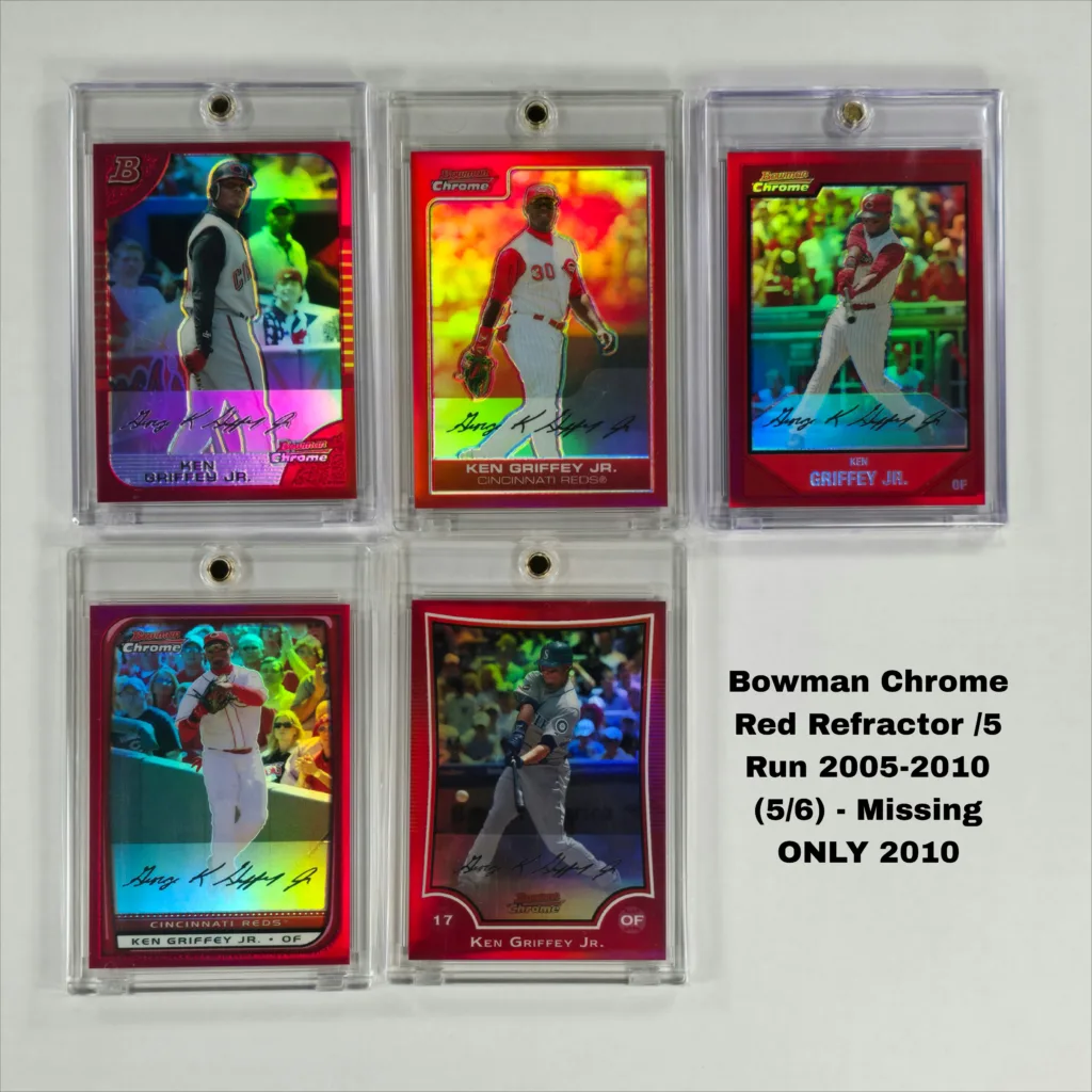 “I have folders in my phone of photos of the cards I don’t have, broken down by year and by set,” Bisio says. “I also have photos of all the 1-of-1s that I don’t have, and the current owners, and where these 1-of-1s reside. It’s not just that I have a massive amount of Griffeys in my collection — it’s borderline obsessive.”